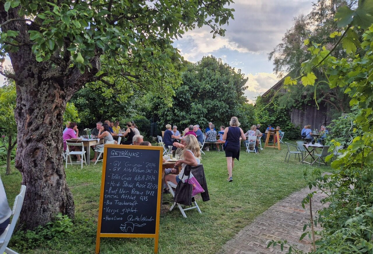Heidi Strobl hat aber noch mehr Veranstaltungs-Asse im Ärmel. Im Sommer eröffnete sie ihre erste Buschenschank im Garten der Alten Schule von Wetzelsdorf. „Das war ein voller Erfolg, ich bin sehr dankbar, dass das so gut gelaufen ist.“ Am Menü standen unter anderem eine „Schuljause“ und ein „Nachbarschaftsteller“, für den sie mit Olmützer Quargel und Znaimer Gurkerl einen Blick über die Grenze geworfen hat. „Mikulov ist nur einen Katzensprung entfernt, aber die Grenze ist noch immer in unseren Köpfen.“ Statt Getränkekarten beschriftete sie kleine Schiefertafeln, wie in alten Klassenzimmern. Der nächste Termin steht im Juli 2026 am Programm. Regenwetter Location: der alte Schüttkasten.