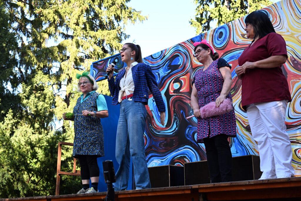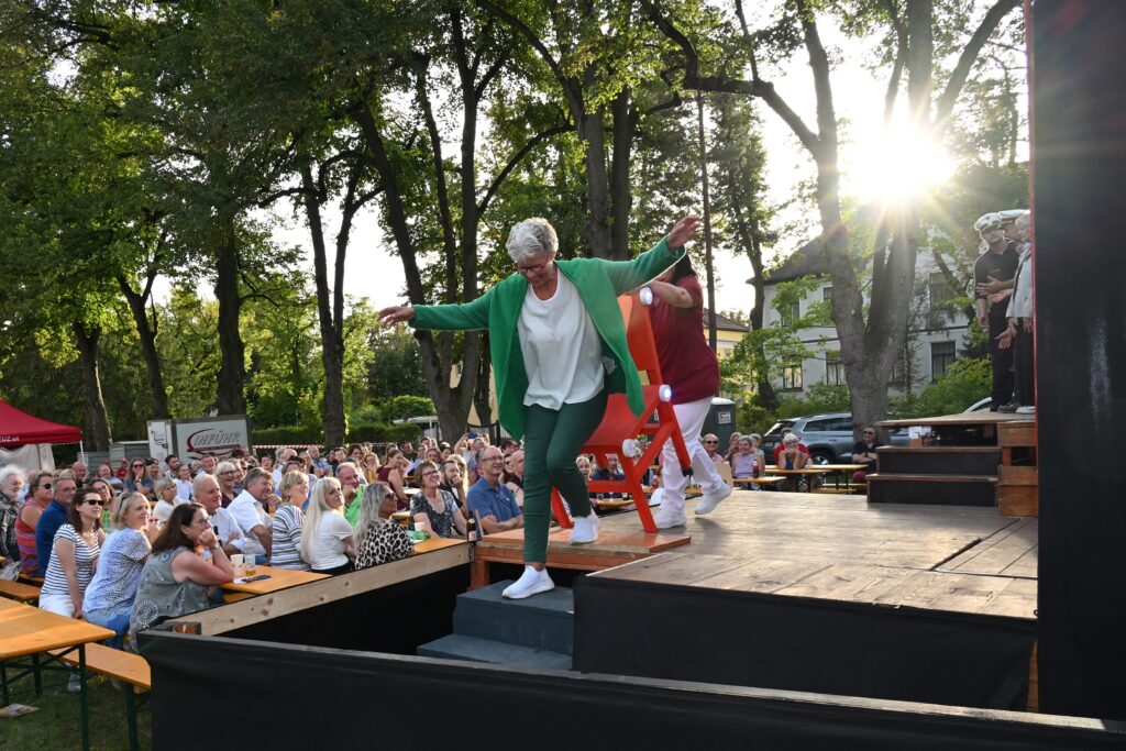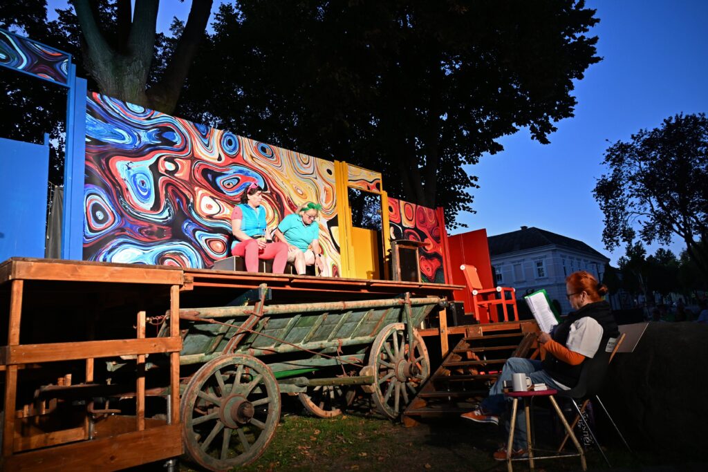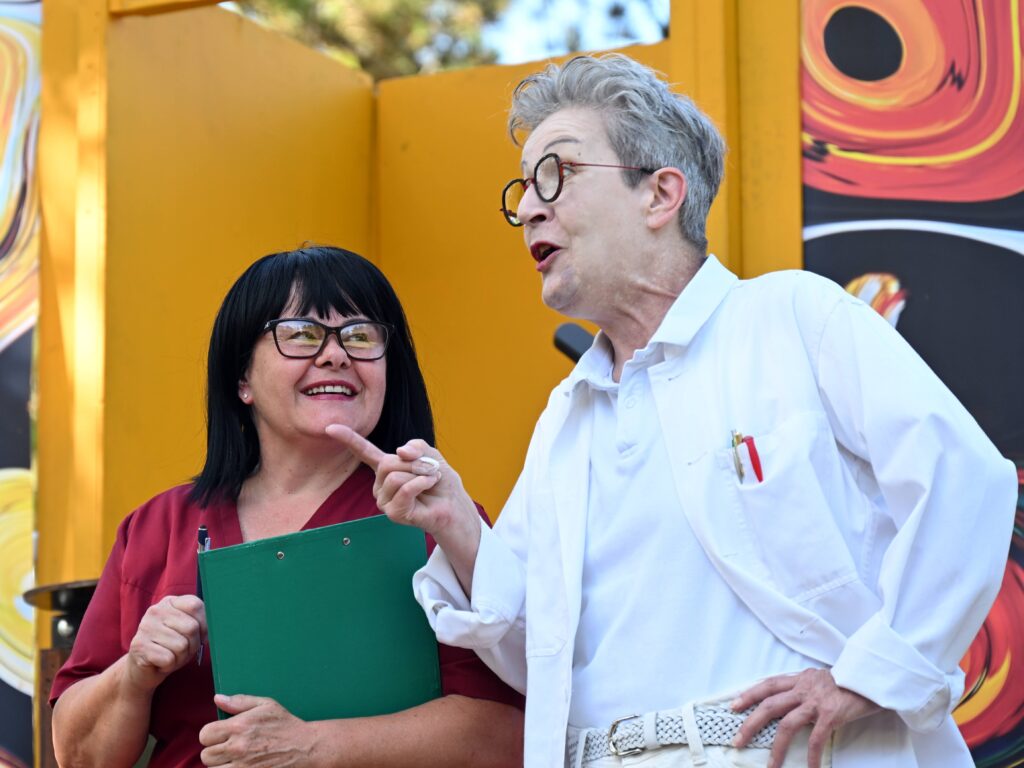 Und gespielt wurde reichlich: Von Wetti Schwatzinger (Valerie Berger) und Betti Staubinger (Eva Kronberger), die als Raumpflegerinnen das Chaos im Griff zu haben schienen, über den Altbürgermeister Schwammerl (Erwin Wögenstein) bis hin zum wunderbar absurden Prof. Dr. Ronald Wahnsinneck (Christiane Hangel). Bürgermeisterin Vogerl (Michaela Gamrith) versuchte Ordnung zu halten, während Schwester Mortika (Lisi Flamisch), Pfarrer Jilek und ein quirliger Mix aus Polizisten, Demonstrantinnen, Försterin, Ministrant und Pressefrau das Bild komplettierten.