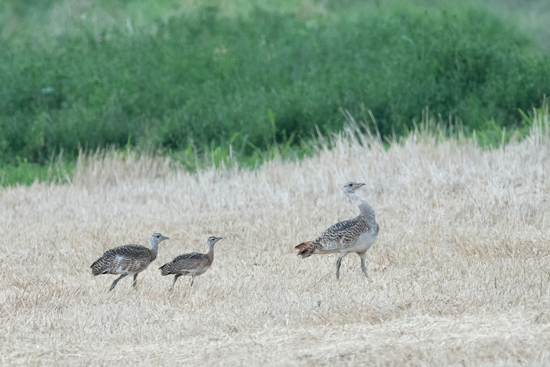 Großtrappe Henne und 2 Junge Küken, Haringsee