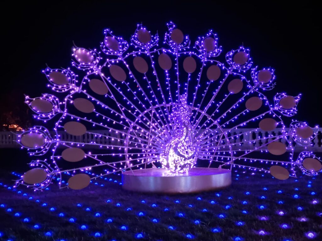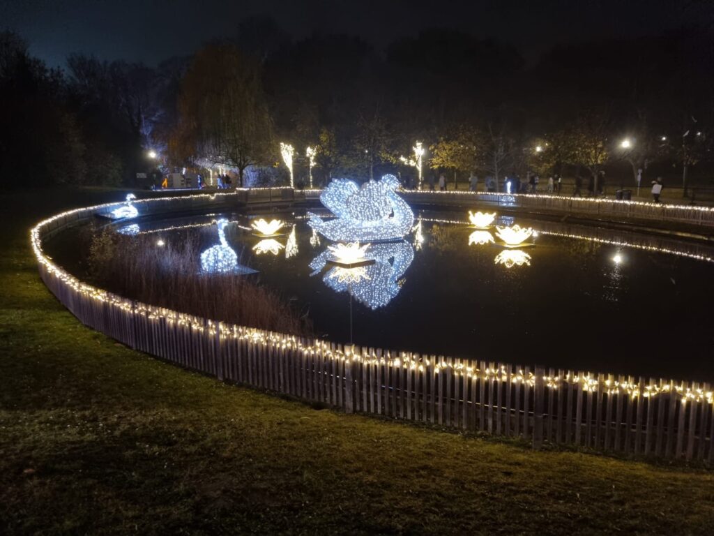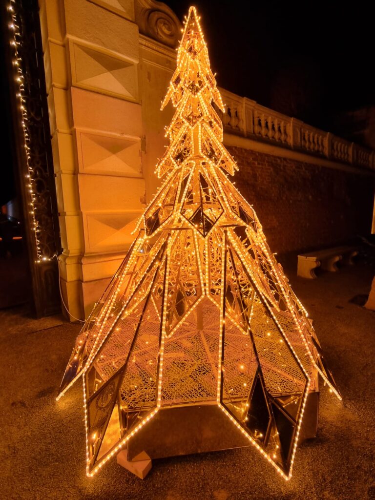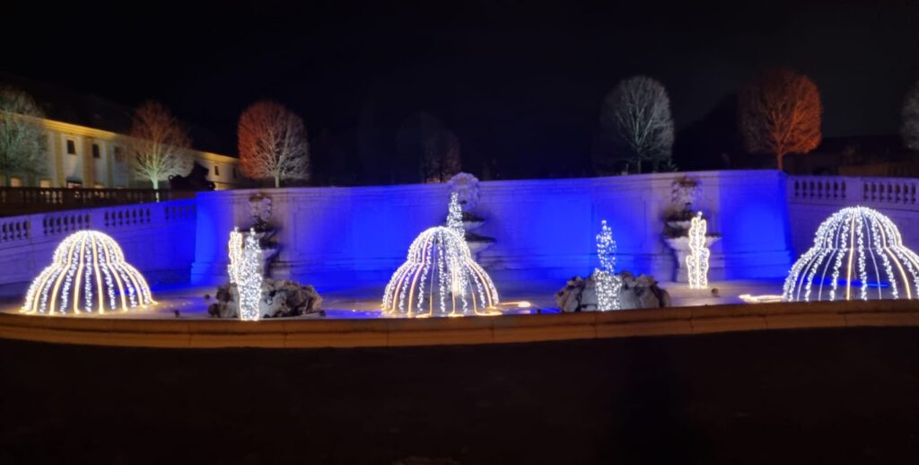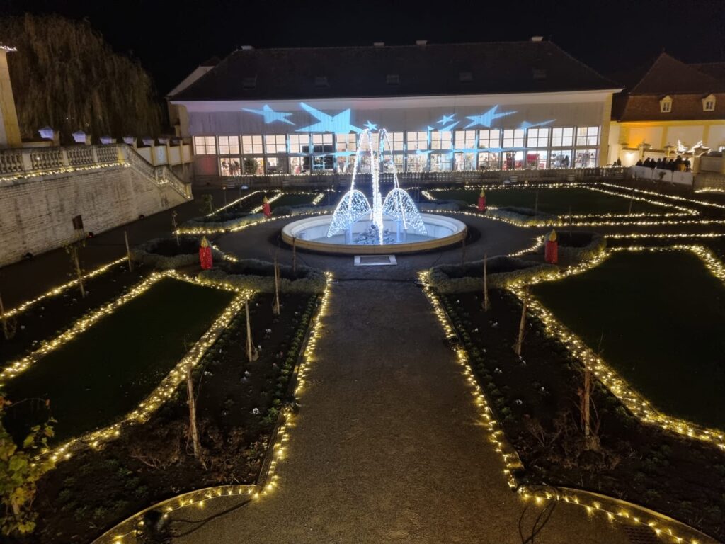 Rund 100 Lichtelemente, 32 beleuchtete Bäume, ein 8 x 2 Meter LED-Lichtervorhang mit wechselnden Motiven sowie zwei Sound-to-Light-Shows in den Orangerie-Gärten rücken die Vorweihnachtszeit ins rechte Licht. Der Weihnachtsbaum aus Obergrafendorf ist stolze acht Meter hoch und überragt damit die 180 geschmückten Christbäume, die am Areal zu finden sind.