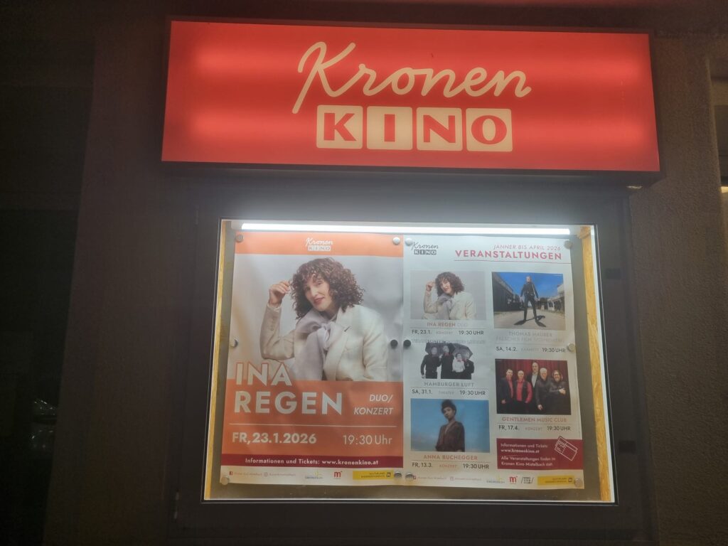 Es war einer dieser Tage mit zu vielen Terminen, zu wenig Pausen und ein paar zwischenmenschlichen Reibereien. Relativ gehetzt mache ich mich vom Marchfeld aus auf den Weg nach Mistelbach. Ein Kinoabend steht am Programm – und ehrlich gesagt hoffe ich auf ein wenig Entspannung. Wobei ich noch nicht weiß, was genau auf mich zukommen wird, denn es ist mein erster Besuch im altehrwürdigen Kronen Kino Mistelbach – einem der wenigen Programmkinos am Land.