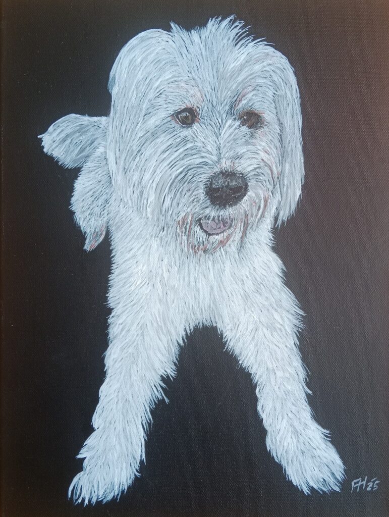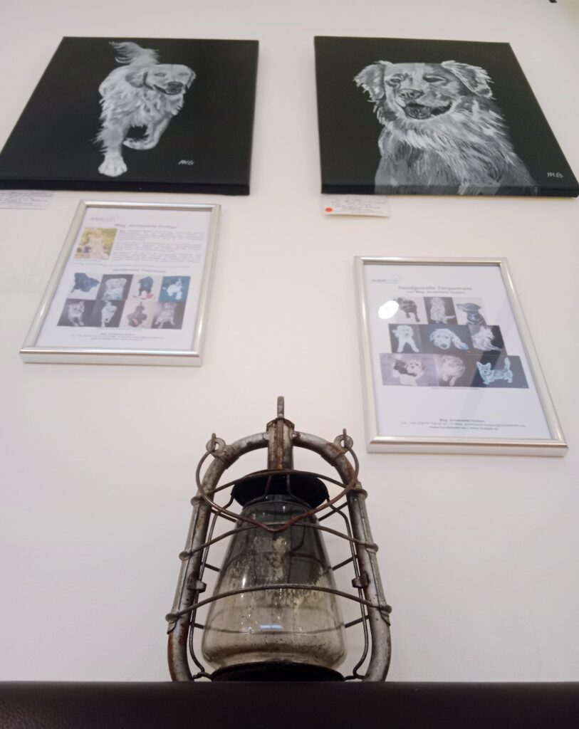 Im Mittelpunkt standen die handgemalten Tierporträts von Annemarie Hurban. Die in Wien geborene und in Niederösterreich aufgewachsene Künstlerin verbindet ihre künstlerische Arbeit eng mit ihrer beruflichen Laufbahn: Als akademisch geprüfte Kynologin und Hundetrainerin begleitet sie Tiere und ihre Menschen seit vielen Jahren. Dieses Wissen und ihre große Nähe zu Tieren spiegeln sich deutlich in ihren Bildern wider. Ihre Porträts – meist in Acryl auf Leinwand – gehen über die reine Abbildung hinaus und versuchen, Wesen und Charakter der Tiere sichtbar zu machen. Jedes Werk entsteht nach Fotovorlagen und ist ein Einzelstück.