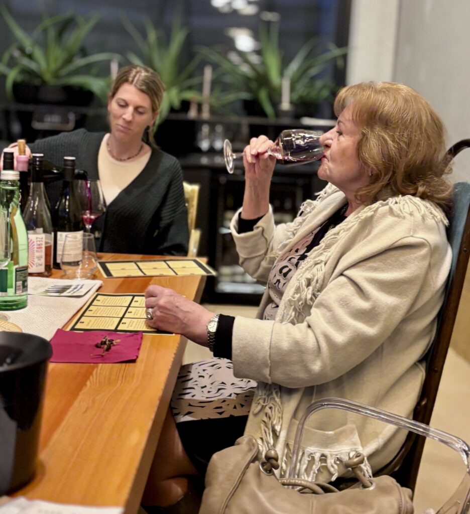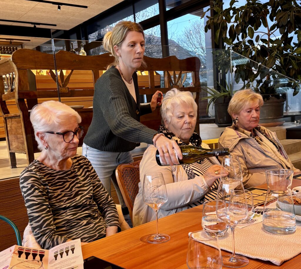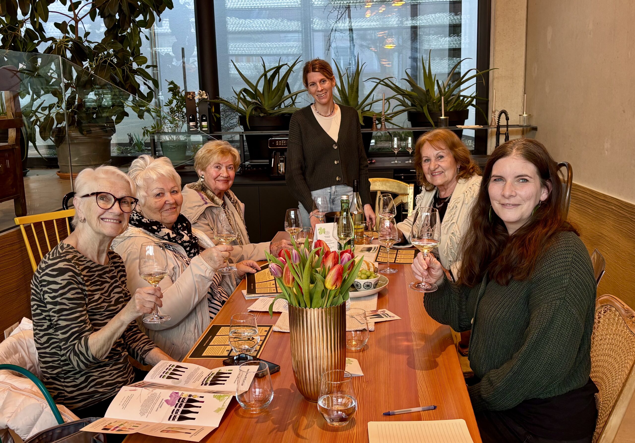 Sechs Weine im Glas, Oliven aus Griechenland auf dem Tisch und vier neugierige Gewinnerinnen rund um die Verkostungstheke: Im Territorium Wein in Dobermannsdorf wurde nicht nur probiert, sondern auch viel erzählt.