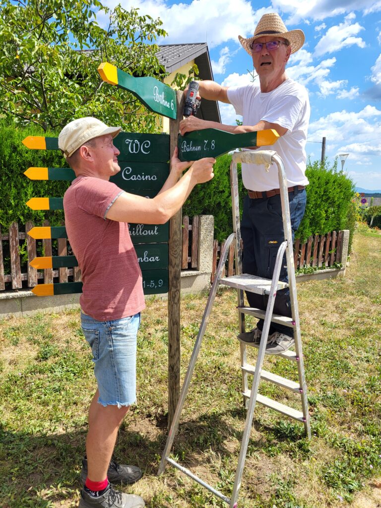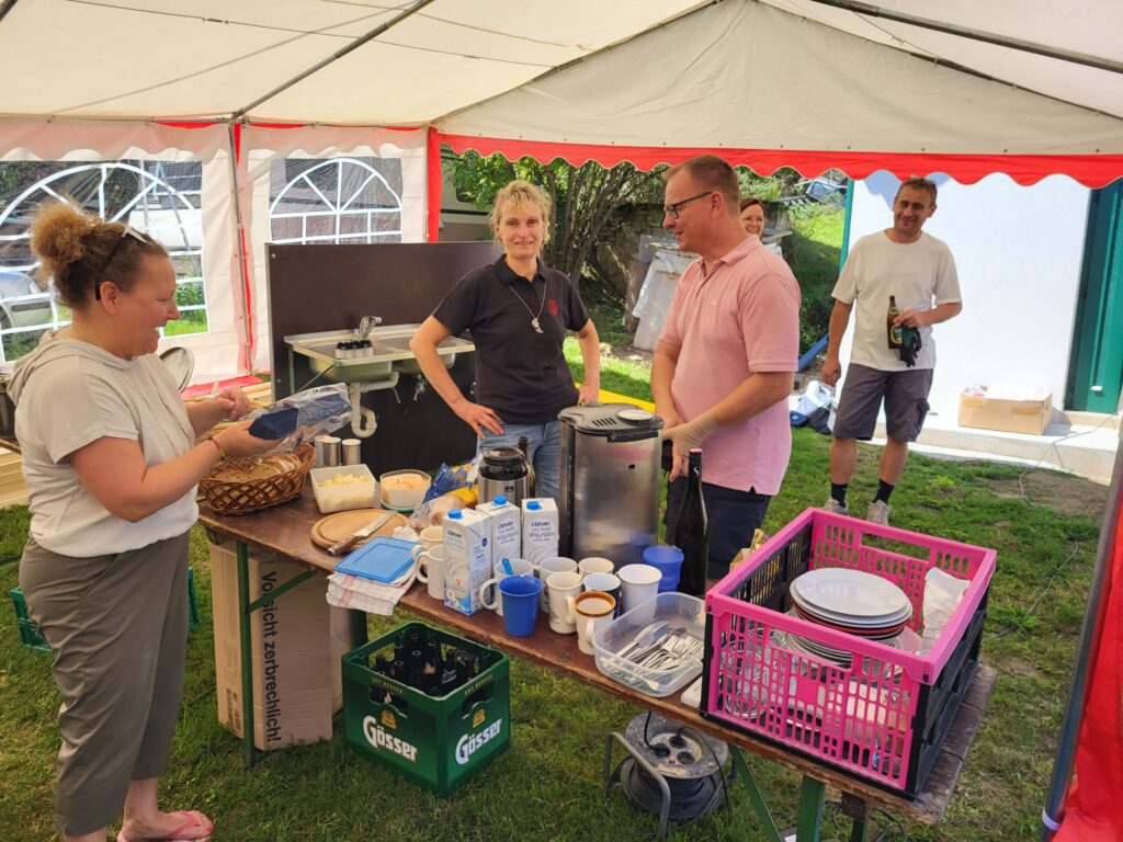 Dieses Dazugehören zieht sich durch alle Ebenen. „Alle, die orangenes Leiberl haben, helfen ohne etwas daran zu verdienen – von jung bis alt.“ Die Kinder haben Spaß daran, die Getränke mit dem Bollerwagen anzubieten, die älteren Damen backen, andere wiederum stellen Schilder auf oder legen Strohpinkel auf, helfen beim Abwasch oder sind in die Vorbereitungen eingebunden.